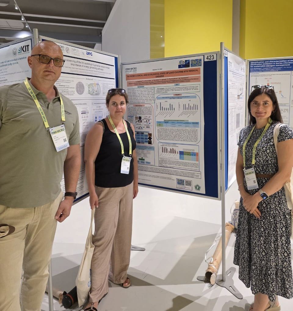 Лабораторія біотехнології мікробного синтезу – завідувач лабораторії Сергій СКРОЦЬКИЙ, старші наукові співробітниці Ольга ВАСИЛЮК та Людмила ХОМЕНКО представили дві постерні доповіді, присвячені результатам дослідження мікробіоти водойм, забруднених внаслідок воєнних дій, з визначенням перспектив використання біодеструкторів та пробіотиків для відновлення їх природного екологічного балансу – “Microbiological and Ecological State of Lake Chorne” та аналізу активності штамів, що руйнують токсичні речовини, залишки вибухових речовин та пов’язаних з ними сполук, до яких належать нітроароматичні сполуки, нітраміни – “The Spectrum of Biodestruction Activity of Strains in Relation to Nitroaromatic Substances”.