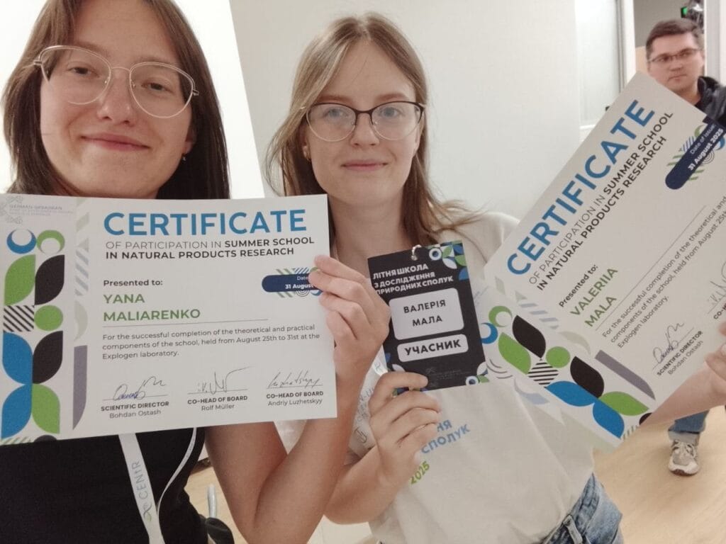 З 25 по 31 серпня 2025 року у Львові та Карпатах відбулася Літня школа з дослідження природних сполук, організована Німецько-Українським Центром передових досліджень природних сполук (CENtR). У заході взяли участь співробітники Інституту мікробіології і вірусології ім. Д.К. Заболотного НАН України – доктор філософії, науковий співробітник відділу загальної та ґрунтової мікробіології Марія ЛОБОДА та інженер 1 категорії відділу фізіології та систематики мікроміцетів Яна МАЛЯРЕНКО.